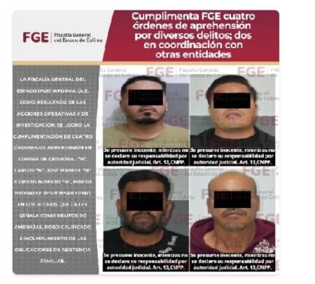 Cumplimenta FGE 4 órdenes de aprehensión por diversos delitos