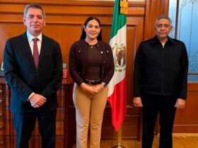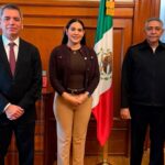 La gobernadora del estado de Colima, Indira Vizcaíno Silva, sostuvo este miércoles una reunión con los titulares de la Secretaría de Infraestructura, Comunicaciones y Transportes (SICT), Jesús Antonio Esteva Medina, y de Hacienda y Crédito Público (SHCP), Édgar Amador Zamora, para dar seguimiento a las obras que iniciarán este año 2026 en la entidad, como el puente del Barrio V de Manzanillo, el puente superior ferroviario de ingreso al puerto en Tapeixtles, así como en el recinto portuario (La Flechita) y Las Tunas.
